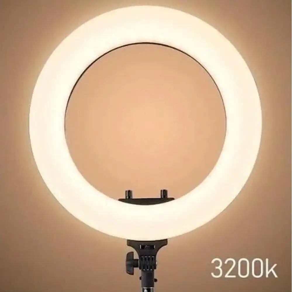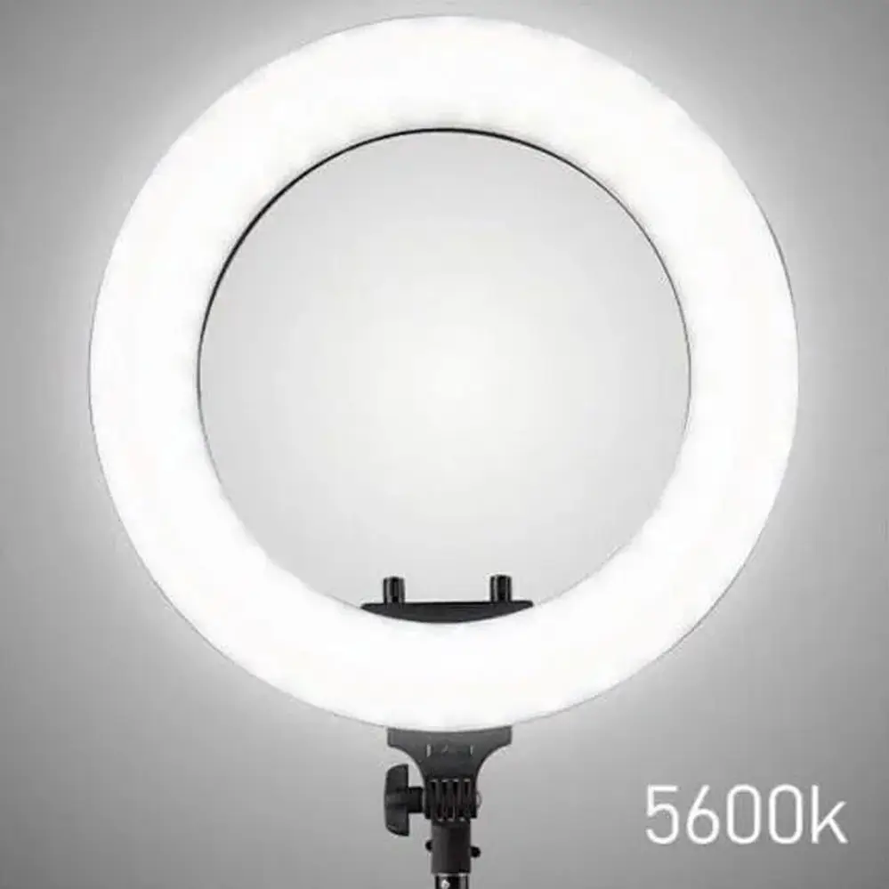 Профессиональная лампа (45 см) удобна в использовании. Эта лампа позволяет экономить рабочее пространство и обеспечивает необходимым светом. Кольцевая лампа - очень полезный инструмент для зон без хорошего освещения. Самое приятное в этих кольцевых огнях - это то, как он освещает интересующий вас объект, равномерно освещая все стороны. Такая лампа часто применяется в видеоблоггинге или MakeUp индустрии.